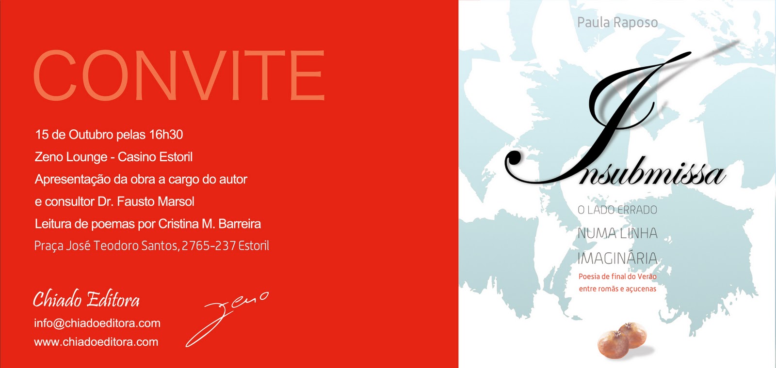 Aqui fica o anúncio deste seu novo livro, com anúncio de lançamento para o próximo dia 15 de Outubro, no Estoril (ver pormenores no convite, abaixo).