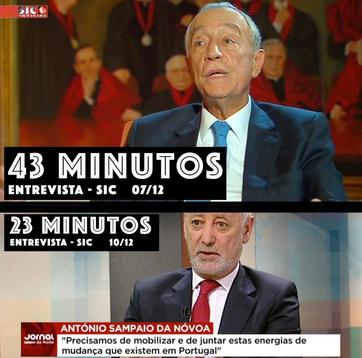 Tendo assistido a ambas as entrevistas, pareceu-nos, cá por casa, que uma delas teria acabado cedo demais… Mas, enfim, como imaginar tal malfeitoria quando tantos holofotes se centram neste momento político? Seria uma insensatez da SIC, tanto mais que, se não estou em erro, cada candidato parte de um pé muito democrático de igualdade plena (?).
