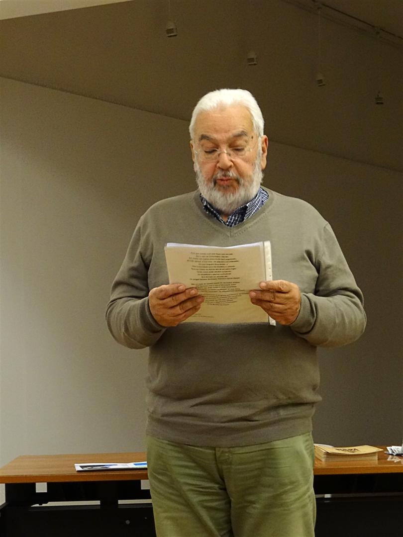 Depois, a palavra ao excelente comunicador que o professor é. Com vivacidade, ritmo e paixão, Amadeu Ferreira levou-nos a passear pelo linguajar (linguajares?) das terras do nosso nordeste… mas sempre em Mirandês, obrigando-nos a redobrada atenção, para não lhe perder pitada…