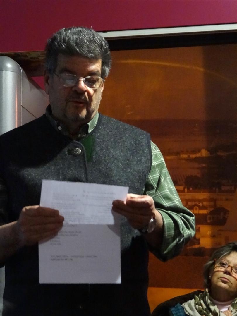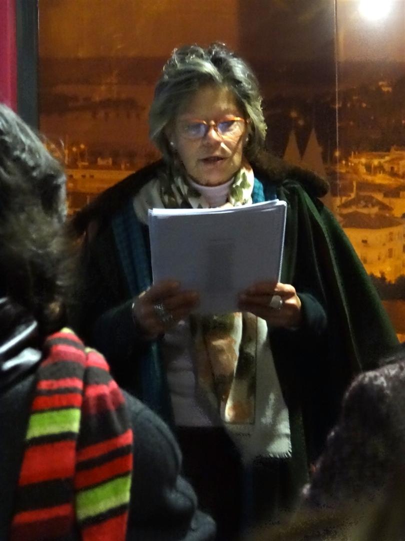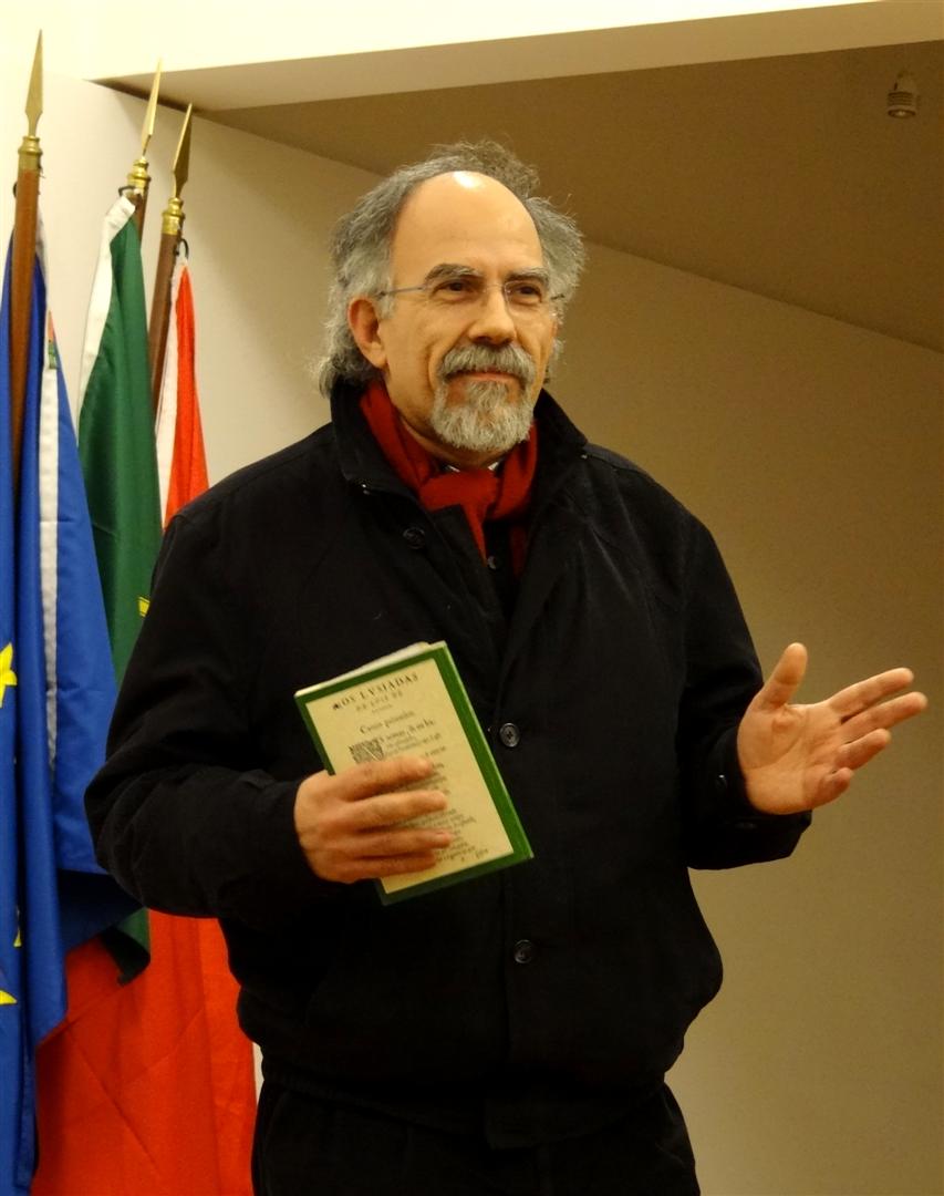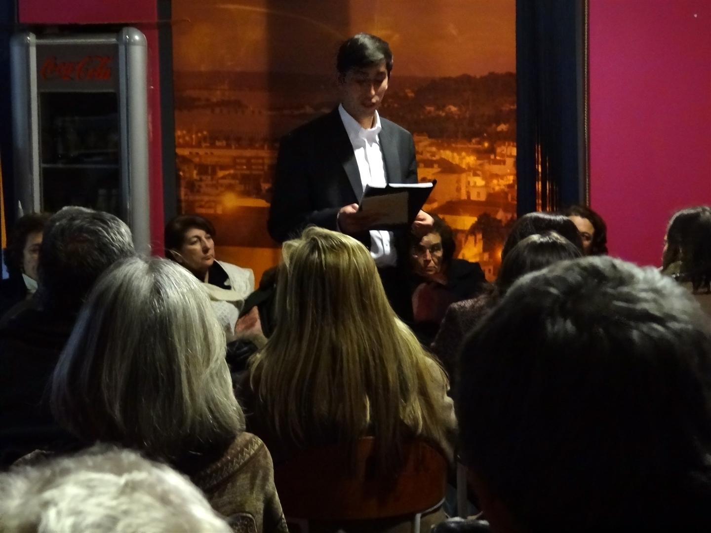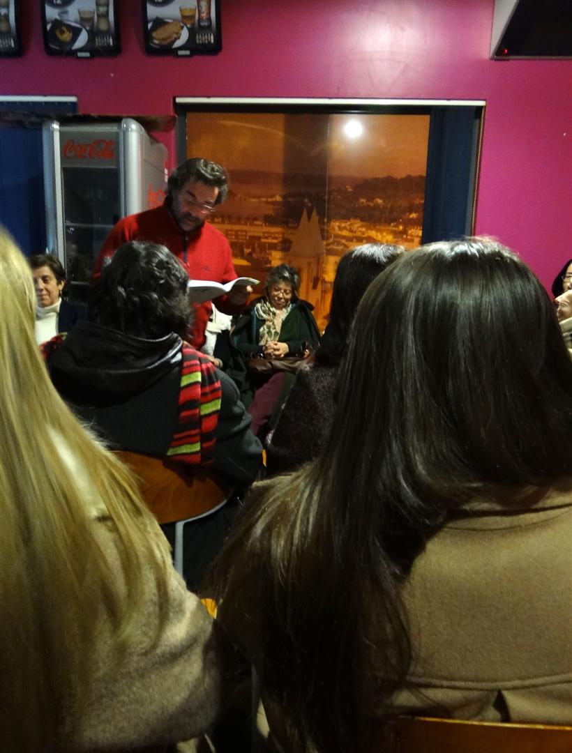 Após a recepção e boas-vindas habituais aos presentes, coube a Carlos Peres Feio fazer a apresentação da nossa convidada, Cristina Carvalho, que nos brindou com um outro olhar, mais próximo, mais envolto em afecto, sobre o nosso poeta-cientista-historiador, pedra basilar de referência – ou pedra filosofal, se preferirem – dos amantes da palavra em forma de poema.